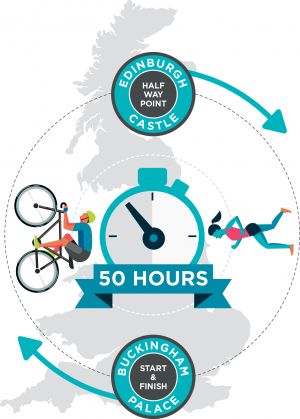 - Two teams of six strangers have to run and ride from Buckingham Palace to Edinburgh Castle and back in 50 hours.